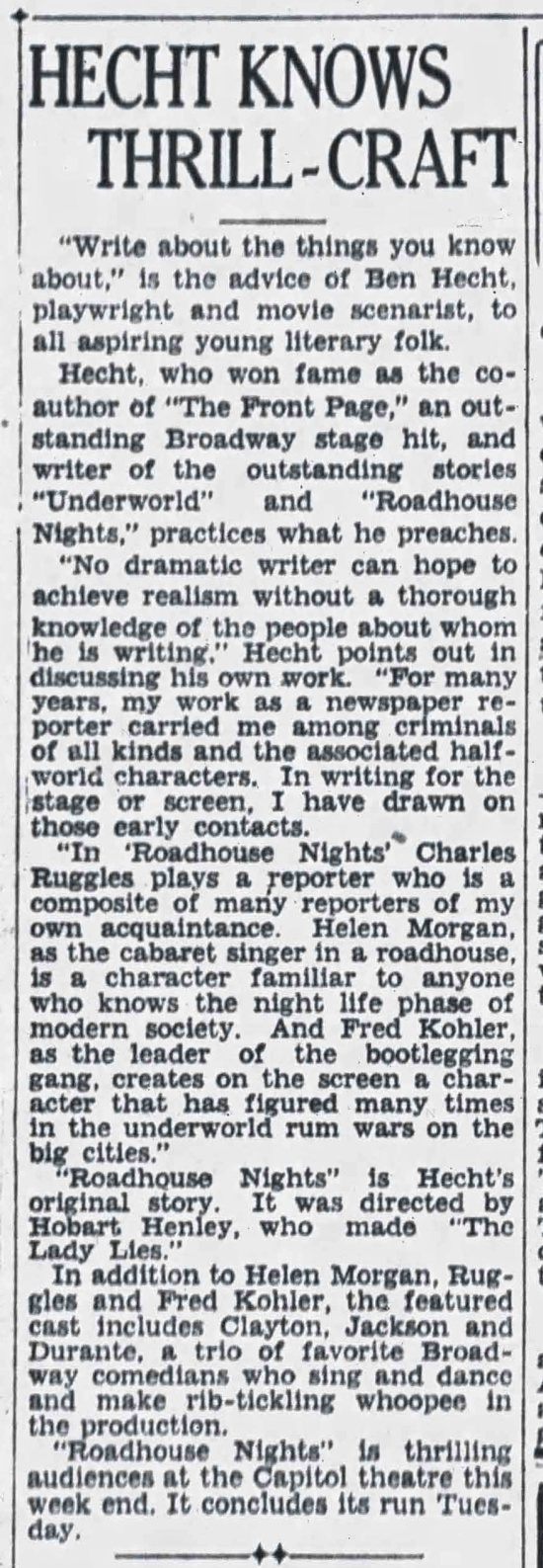 Richard Layman got it almost right in 1981's Shadow Man, calling it "a totally rewritten version . . . with a screenplay by Garrett Fort based as much on a Ben Hecht story as on Hammett's Novel." (It's the as much part that was misleading.)